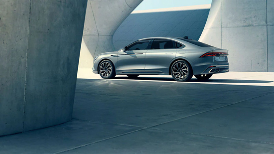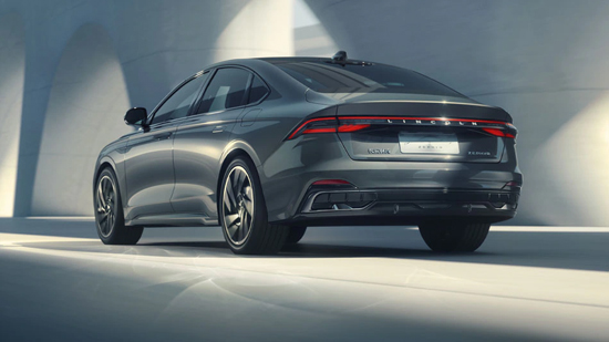 侧面采用了高腰线设计,并且配备了同级别罕见的隐藏式门把手,科技感更强。同时,溜背式车顶以及短尾厢的设计还营造出轿跑车的视觉效果。尾部采用了贯穿式尾灯组设计,并且以可发光的英文字母代替了传统的品牌LOGO,豪华感与科技感完美交融。