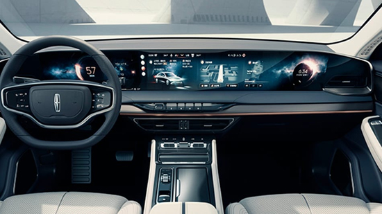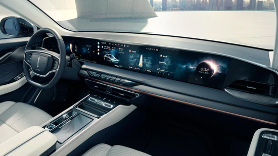 内饰方面,林肯Z采用了目前智能汽车惯用的连体式大屏,12.3英寸全仪表与27英寸横屏组成贯穿屏设计,搭配方向盘上的触控式按键以及精致的电子换挡机构,科技氛围浓厚。