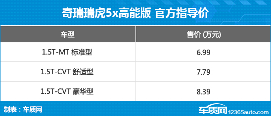 奇瑞瑞虎5x高能版上市 售价6.99-8.39万元