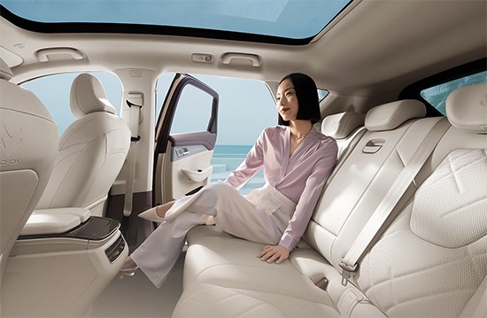 内饰方面,新车采用环抱式驾舱设计,中控设计偏向于主驾驶侧,更便于驾驶者进行操作。中控台采用了大量平直线条,整体层次感更强,20.3英寸4K高清娱乐屏提升了整体的科技感。座椅采用“10层舒适叠层设计”,符合人体工程学,面料覆合发泡层达到10mm,舒适性海绵层为15mm,包覆感和支撑性都非常出色,并同时具备座椅记忆、通风、加热、按摩功能。后排坐垫达到490mm,并可以9度调节。