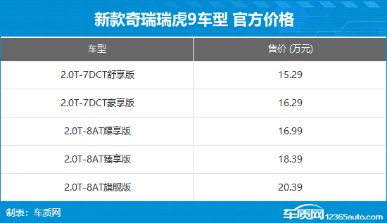 新款奇瑞瑞虎9正式上市 售价15.29-20.39万