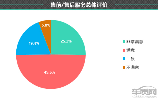 不过,在售前/售后服务总体评价中,接受调查的车主还是给出了相对客观的评价,其中认为“非常满意”和“满意”的车主占比之和超过七成,认为“一般”的车主占比为19.4%,认为“不满意”的车主占比仅为5.8%。