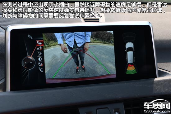 正如前文所述,宝马X1上配备的倒车雷达灵敏度不尽如人意,主要体现在中间两个测试点间,蜂鸣声频率变化不够明显,不过初次探测到物体及最终位置时,车内的声音警报清晰可辨,如果渐进过程“分段”更加线性,危急时刻的突兀感会得以缓解。反观实际测试数据,宝马X1能够在距物体30cm处发出高频提示音,空余较为充分,不过倒车时注意控制车速才是万全之计。
