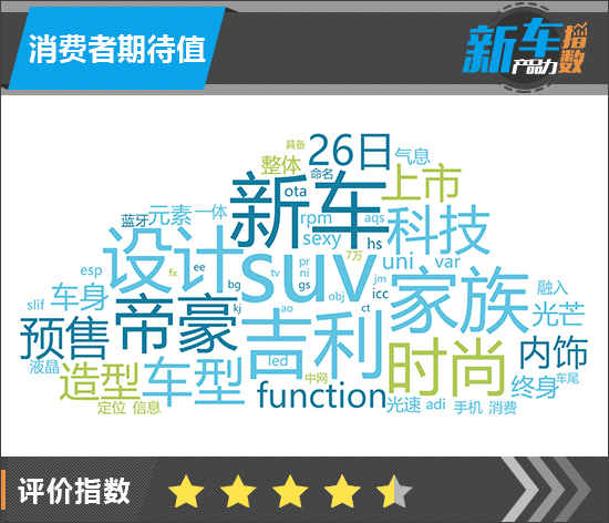 对于吉利帝豪S的消费者期待值,我们引入了车质网大数据采集和分析系统进行分析,从而得出目前网络上关于新车的舆情走向。