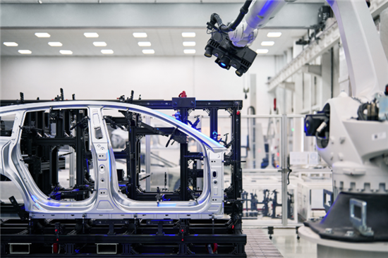 在四门装配车间,高稳定的四门间隙面差匹配,可以把正负误差控制在0.5mm,机器人全自动安装好全车四扇门只需98秒,理论四门装配合格率达到100%。