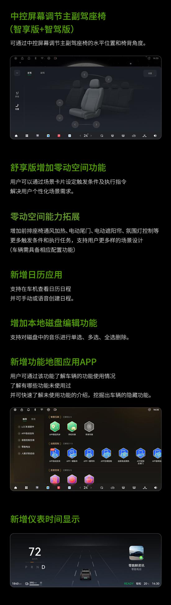 具体来看,此次OTA推送的零跑C10纯电和增程的V3.10.16版本,包括NAP高速智能领航、新增了语音大模型、分屏功能。其中,NAP高速智能领航新增了功能场景,开通全国大部分高速公路场景和包含北京、天津、成都、广州等12城的高架场景,以及360°环视倒车轨迹线优化。此外,还新增了上坡坡道辅助影像,并对ACC/LCC/LKA/APA功能进行优化。