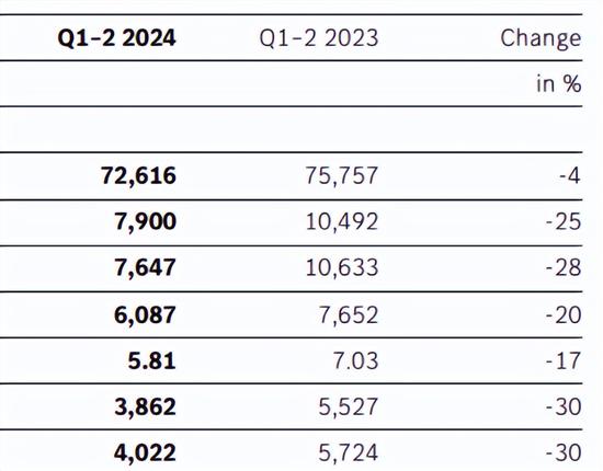 梅赛德斯-奔驰集团报告称,今年第二季度,集团营收达367.43亿欧元,同比下降4%;息税前利润(EBIT)下降了19%,至40.37亿欧元;调整后的息税前利润为40.49亿欧元,同比下降22%;净利润为30.62亿欧元,同比下降16%。今年上半年,集团营收达726.16亿欧元,同比下降4%;调整后的息税前利润为76.47亿欧元,同比下降28%;净利润为60.87亿欧元,同比下降20%;同期销量下降了6%,其中电动汽车销量下降了17%。