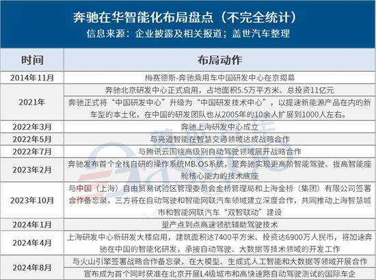 2022年,奔驰上海研发中心成立,2024年4月新研发大楼启用,建筑面积达7400平方米、投资达6900万人民币。相较北京研发中心主要负责车辆基础研发工作,上海研发中心的核心目标更偏向于加速奔驰在中国的智能化研发,承接自动驾驶、大数据等技术领域的开发工作。