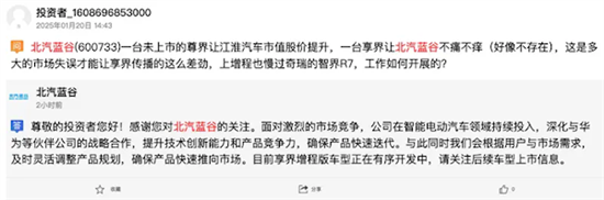 快科技2月7日消息,北汽蓝谷于2月7日在上证e互动平台宣布,公司正积极应对市场竞争,持续在智能电动汽车领域进行投入。