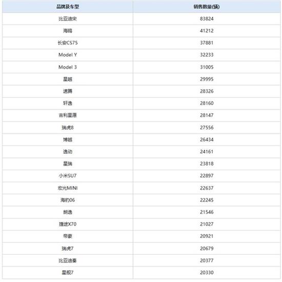 在1月的乘用车市场中,批发销量超过两万辆的车型共有22款。其中,比亚迪宋以83824辆的优异成绩继续稳居榜首。