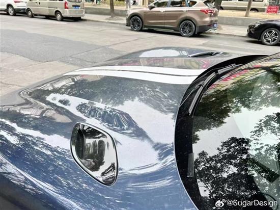 可以看到这台YU7除了轮圈已经全部去除了伪装,车漆颜色偏蓝,漆面非常光洁,显得很是高级。