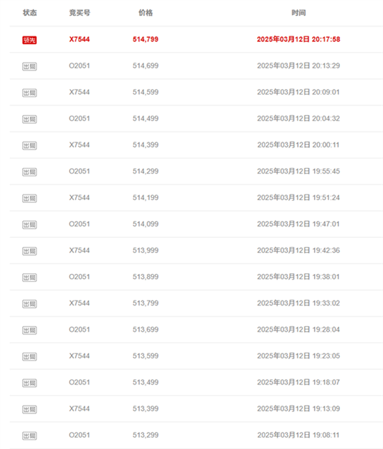 本次竞价活动设置延时出价功能,在竞价活动结束前,当标的物的竞拍时间只剩最后5分钟时,5分钟内如果有人出价即循环延时,延时5分钟。这也是竞拍迟迟没有结束的原因。
