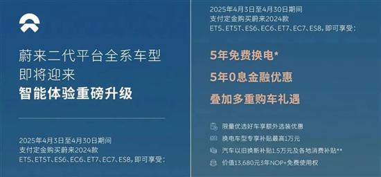 4月初时,蔚来公布的4月购车优惠政策中,针对部分车型提供了“5年免费换电”权益。而且,蔚来还提供了20%低首付+5年0息的金融购车方案,ET5T日供低至123元,能够减轻不少年轻消费者的购车压力。