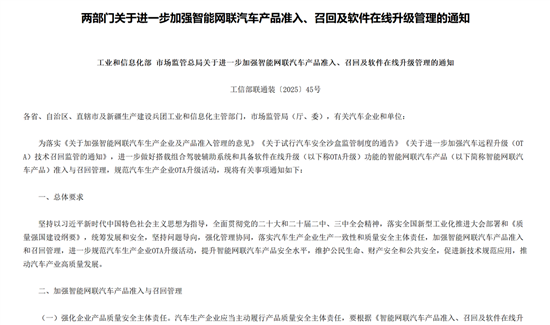2025年2月,工信部与市场监管总局联合发布的《关于进一步加强智能网联汽车产品准入、召回及软件在线升级管理的通知》(以下简称《通知》),首次系统性规范了准入与宣传准则。