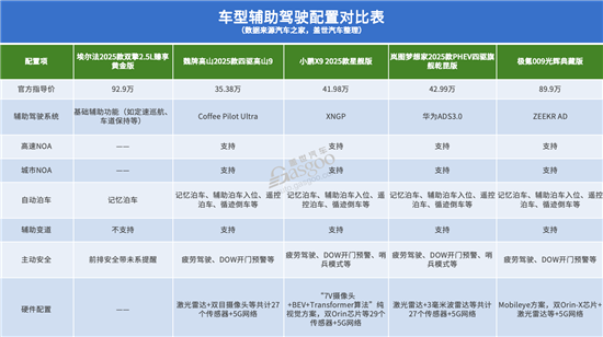 其中,小鹏X9 XNGP辅助驾驶系统、极氪009 ZEEKR AD系统因搭载了两颗英伟达芯片,算力达到508 TOPS,使其配置在功能丰富度和用户体验上都明显领先于埃尔法。理论上,四款国产车型都将辅助驾驶功能提升到了L2+级水平,在业内处于头部梯队。