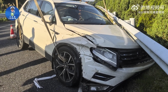 今年6月29日凌晨05时许,在江西抚州,李某驾车在抚吉高速上行驶时,车辆忽然向左偏离车道,猛烈撞上中央护栏,车头钻进护栏缝隙被卡住,无法动弹,受损严重。