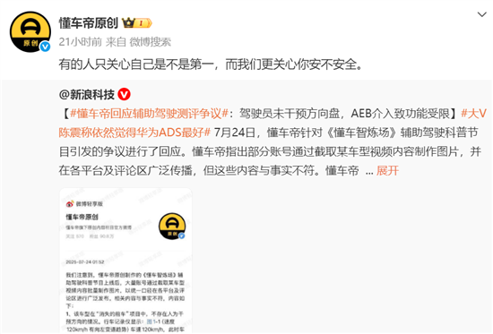 而对于《懂车智炼场》引发的争议,7月24日,懂车帝针回应称:“有的人只关心自己是不是第一,而我们更关心你安不安全。”