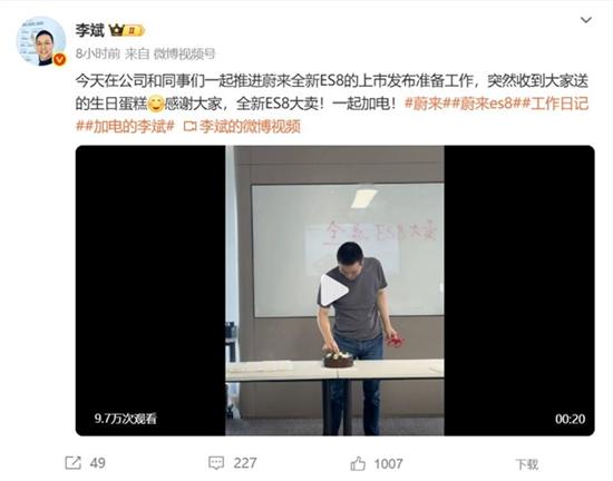 蔚来李斌加班中过生日:吹响全新ES8冲锋号
