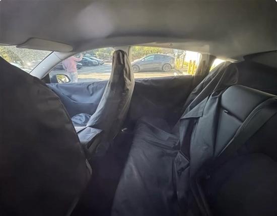 至于车内,在此之前已有谍照流出,前排几乎看齐焕新Model Y,甚至还保留有转向灯杆,不过也有独属的设计,比如扶手箱前方与中控台为断开状态,如此主副驾驶呈贯通。