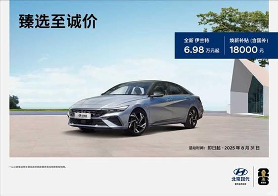 伊兰特焕新补贴1.8万元(含国补),补贴后起售价6.98万元。