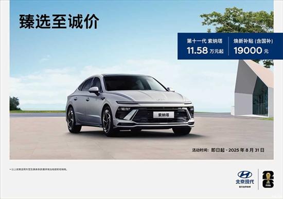 索纳塔焕新补贴1.9万元(含国补),补贴后起售价11.58万元。