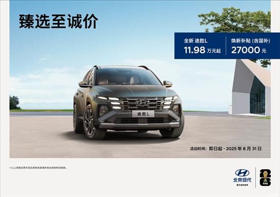 途胜L焕新补贴2.7万元(含国补),补贴后起售价11.98万元。