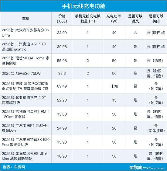 随着汽车技术不断进步,手机无线充电功能逐步在汽车上得到了应用普及,上到百万豪车,下到十万元的入门车型,大多都配备了这项功能。相比以往传统连线的充电方式,车载无线充电最大的优势就在于适配率高,支持Qi无线充电协议的手机都可进行充电,开车出门不必再携带各类充电线,能有效避免车内线多杂乱的情况。那么对于不同品牌、不同价位的车型而言,无线充电功能的实际使用效果是否一致?本次我们将针对近一年内上市的10款不同价位的热门车型进行无线充电性能测试,涵盖了自主、合资和进口品牌,通过测试结果对比来寻找答案。