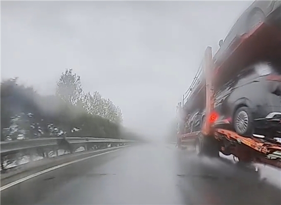 2025年10月2日,许广高速湖北随县段,雨天,一辆新能源小汽车在快车道行驶时,在超越一辆运输商品车的半挂车时,突然失控偏离车道,以100km/h左右的速度撞上半挂车,事故造成两车受损,幸无人员伤亡。