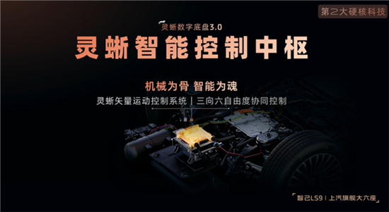 即将预售的上汽智己旗舰SUV LS9配备灵蜥数字底盘3.0,拥有旗舰级底盘硬件,包括前双叉臂后多连杆悬架、电控阻尼减振器、双腔闭式空悬、双向24度四轮转向、MK C2线控制动系统。