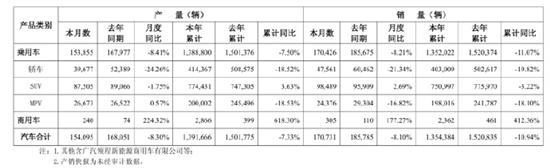 广汽集团10月汽车销量17万辆 同比下降8.1%