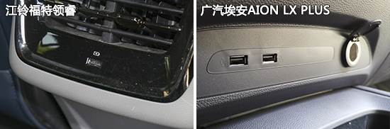在USB接口方面,雪佛兰探界者以及广汽埃安AION LX PLUS均为四个,江铃福特领睿为三个,且三款车型前后排均有接口分布,值得一提的是,雪佛兰探界者以及江铃福特领睿还配备了Type-C接口,丰富了日常使用需求。此外,雪佛兰探界者在车内还设置了220V电源,实用性表现在三款车型中最为出色。