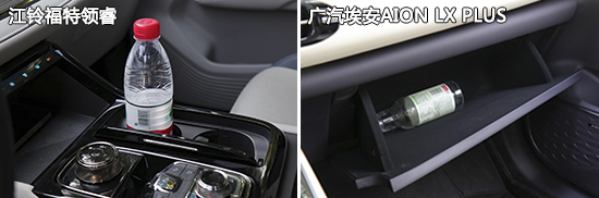 在储物空间方面,三款车型满足日常使用不成问题。其中,雪佛兰探界者除杯架外,全车提供了15个储物空间;江铃福特领睿除杯架外全车储物空间16个;广汽埃安AION LX PLUS的表现最佳,全车储物空间为20个,且大小设计合理。