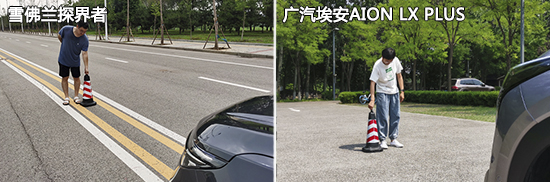 在前雷达表现方面,除了广汽埃安AION LX PLUS外,其余两款车型前雷达同样为四段蜂鸣,从实际表现来看,仅雪佛兰探界者与测试经验值保持一致,而其余两款车型的测试数据相较测试经验值存在一定偏差,日常使用时需要驾驶员多加留意。