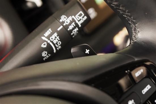 1.5L CVT潮跑 Pro版实用了皮质方向盘,手感和大小我觉得都很不错,支持前后上下四向手动调节。两侧的多功能按键键程和按压反馈手感也都挺好,并没有因为车型定位而不在乎细节。两侧的换挡拨片式该款车型独有的配置。