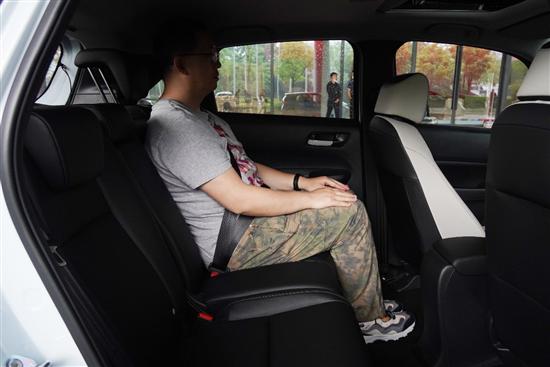 别看广汽本田新飞度仅有4081mm的车身长度,以及2530mm的轴距表现,但在乘坐空间方面你真的不用担心。后排下陷的轿厢地板足可以让你的大长腿找到舒适的姿势。从实际体验来看,我身高179cm的同事,在后排落座后,腿部和头部均有不错的空间表现,并且长度尚可的后排坐垫也不会让大腿悬空。