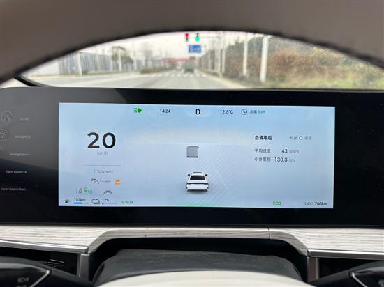 既然是测试,自然是要以最经济的方式进行。所以驾驶模式为经济,动能回收最高,初始路段要经过一段城区,首先选择了纯电优先为主要驱动形式。