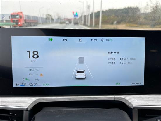 在行驶了130.3公里以后,令人不敢相信的是,每一百公里电耗仅为5.1kWh,油耗也仅为1.8L每一百公里!当然,今天我的驾驶方法有些过于极端,甚至空调都没有开启。但在后续的试驾过程,我以正常油门开度,和打开空调的情况下去驾驶,百公里油耗也仅仅只是徘徊在4L/100km以下,这还是在电池电量较低的状况下。
