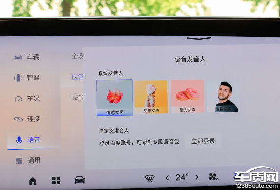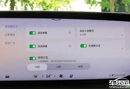 在语音交互方面,2024款别克GL8陆尊PHEV支持语音分区域唤醒识别、免唤醒对话以及语音连续识别,基本能够满足日常使用所需。实测来看,这套语音系统可以比较快速精准地执行指令。设置方面,用户不仅可以自定义唤醒词,而且还可以设定连续对话的时长。系统发音人提供多种选择,包括情感女声以及甜美女声等。此外,用户还可以登录百度账号,录制专属语音包。
