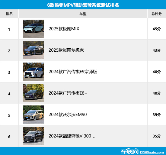 通过此次横评可以发现,极氪MIX和岚图梦想家的总评分达到40分以上,成绩突出。传祺E9、传祺E8+和沃尔沃EM90的总评分相差不大,表现同样可圈可点。相比之下,奔驰V 300 L整体表现欠佳,在跟车状态环节失分较多,最终导致总评分垫底且与另外5款车型差距较大。事实上,参与横评的6款车型在辅助驾驶系统测试中或多或少都存在一些问题,希望厂家在后续的车型升级中持续优化改进,为车主带来更加安全便捷的辅助驾驶体验。