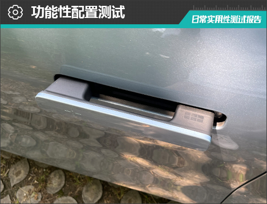 评测车配备驾驶位无钥匙进入功能,并支持遥控钥匙、蓝牙钥匙进入方式。车门把手采用隐藏式设计,当携带遥控钥匙靠近车辆后可感应解锁。在实测过程中并未出现失灵或是卡顿情况,实用性表现令人满意。