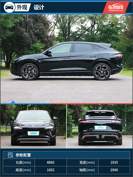 2025款腾势N7融合轿跑造型与SUV高通过性设计,黄金轴长比以及长轴距短前悬的比例令车身姿态舒展优雅。前脸传承腾势家族π-Motion美学设计,双C造型刻画出宽体运动的视觉效果。前保险杠集成主动式进气格栅,可根据车速自动开闭,降低风阻并提升散热效率。尾部配备后扩散器导流槽以及车顶扰流板,在高速行驶时可减少尾部乱流,提升续航稳定性。