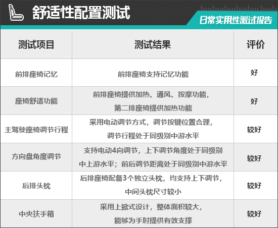 在主驾驶座椅测试中,评测车的主驾驶座椅最前端和最末端之间的距离为255mm,处于同级别中游水平。