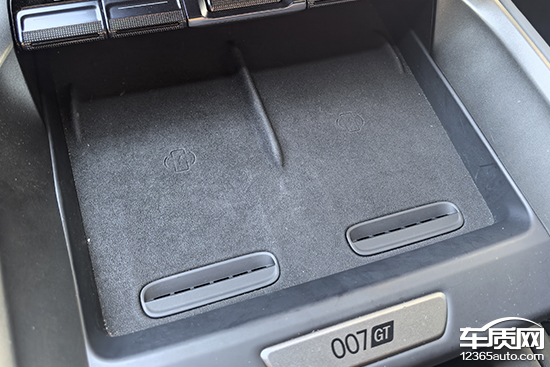 评测车在中控台下方配备了2个50W手机无线充电板,用户可以通过中控屏内的虚拟按键或语言指令控制开关。值得一提的是,手机无线充电板还配备了通风散热口,实用性表现不错。
