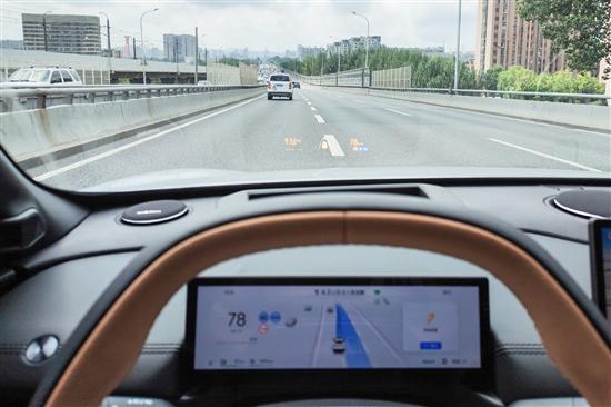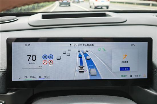 试驾中,我们在高速路段深度体验了此功能。系统能够稳定地保持在车道中央行驶,根据设定车速和前车距离自动调节巡航速度,跟车加减速的过程相当线性平顺,避免了突兀感带来的不适。在需要变换高速或进出匝道时,系统也能根据导航信息在合适的时机自动发起变道并完成上下匝道的动作,整个过程逻辑清晰,执行流畅,大大减轻了长途驾驶的疲劳感。