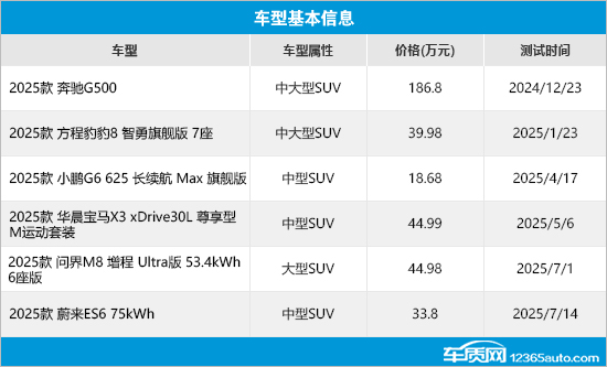 本期选取的6款车型包括3款中型SUV、2款中大型SUV和1款大型SUV,涵盖自主、合资以及进口车型,既有传统燃油车,也有新能源车。