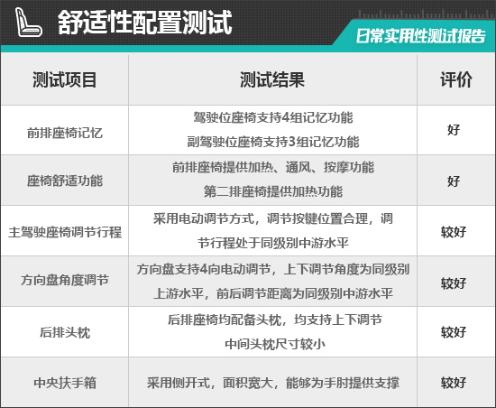 二、舒适性配置测试