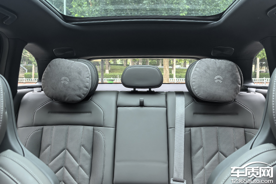 评测车后排座椅提供了三个头枕,头枕均可以上下调节,填充物较为柔软。但中间头枕尺寸相对较小,对于后排中间乘客来说舒适性有一定影响。