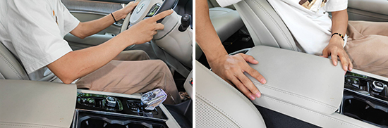 评测车前排中央扶手为上掀式设计,面积较大,并采用皮质包裹,触摸手感不错。虽然不支持位置调节,但在驾驶过程中还是能够对于驾驶者的手肘起到支撑作用。