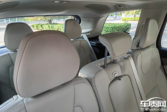 评测车第二排座椅提供了三个头枕,内部填充物软硬适中,只有中间头枕支持上下调节,但其面积较两侧头枕较小。
