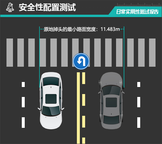 车辆在日常使用中,经常会遇到转弯或者掉头的情况,这个时候车辆的转向灵活性就显得非常重要了。了解爱车在原地掉头时所需的路面宽度,能做到心中有数,从而避免剐蹭等危险情况的发生。经过实测,评测车原地掉头的最小路面宽度为11.483m,处于同级别中下游水平。